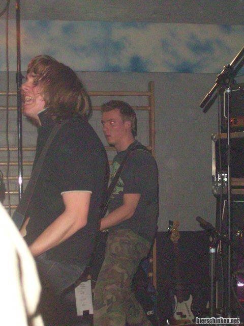 Hier zu sehen Gitarrist Timo (mit scheusslicher Frisur) und Bassist Hans (mit komischem Blick)