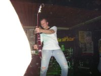 der Kollege zeigt wie senkrecht eine Gitarre stehen kann. Im Hintergrund musikalisch begleitet von Claus und Thomas. Nur Matze nich zu sehn