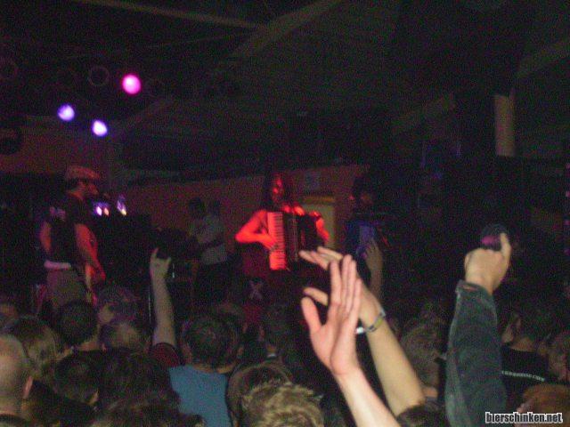 Eric Melvin packt am Ende zur Überraschung alle das Akkordeon raus (heisst dat so?) und alle feierns ab. Nach 5 Minuten immernoch und alle feierns ab. Nach 10 Minuten feierns immernoch alle ab. Sind die alle uppjemaacht oder was? Irgendwann dann doch Schluss, es hagelt Pleks und die Bands laufen nochmal mit freiem Oberkörper durchn Saal, nur die Epoxies-Sängerin hat noch was drüber. Enttäuschend, wir gehn.