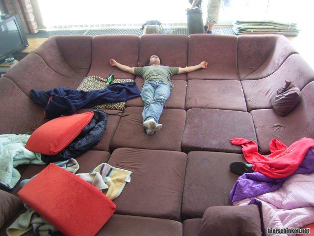 Jo, morgens aufgestanden, meine Eltern ham inzwischen fluchtartig das Haus verlassen, und auch die Kölner müssen weitergääin die solln schließlich alle heute noch irgendwo spielen, haha, die armen, nur Steelneck Frank kann sich nich so ganz aufraffen