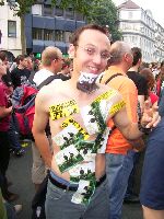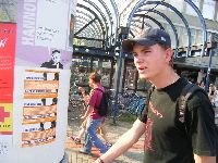 Hille, heute im nil-Shirt, verteilt überall fleissig seine doofen Xtaster-Aufkleber und wird dafür sogar noch von Britta festgehalten