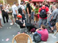 So, wieder nach draußen, die Leutchens getroffen die draußen warn oder bei den Bananafishbones...Hille hat sich n Stuhl vonner Kneipe gegenüber geklaut und is total fertich, der arme der
