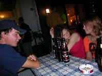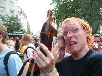 Irgendson Arbeitskollege von Volker gibt uns mit den Worten "Volkers Freunde sind auch meine Freunde!" ne Flasche Jägermeisterk, die sich Fö und Nico natürlich sofort reinfegen