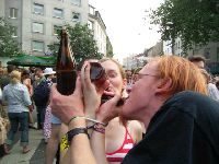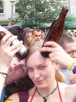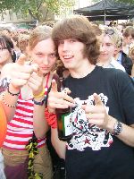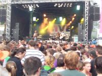 So, auffer Einslivebühne spielen inzwischen die H-Blockx, will ich eigentlich nich sehn und geh mit Helena und Martin zur Parkplatzbühne, da spielen nämlich die Trashmonkeys und die wollt ich mir eh nochmal anschaun