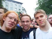 Irgendwann zwischendurch tippt mir dieser nette Herr auffe Schulter mit den Worten "Ey, du bist doch der Fö?" ich antworte ganz adäquat "jo, und du bist doch der Maks!" - "Von Bierschinken?" - "von rilbfhpa?" perfekt, besser kann man sich garnich kennenlernen. Ich soll n doofes Gesicht in seine Kamera machen und er in meine, er hat gewonnen.