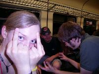 Inner U-Bahn treffen wir noch nen süßen kleinen Jungen mit nen Petersilienstrauß inner Hand und stellen uns vor wie er vor seiner Freundin kniet und ihr den überreicht. Findet er zwar auch witzig, will die Szene aber nich nachstellen, schade...Machen wir halt zu fünft nen Antrag.