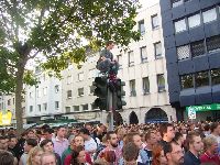 und ein Typ hat sichs da oben auffer Ampel bequem gemacht...sieht aber eherr aus als würd er kacken, die Sau!