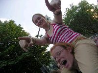 Fö sieht auch ziemlich fertig aus, Britta zeigt ihr Jäckchen oder was das is, warum auch immer...Jo danach gehts noch kurz zur Parkplatzbühne um den Schluss von Days in Grief zu sehn ("Danke, wir waren Days in Grief aus Köln!") und dann natürlich ab zu unserer Lieblingspommesbude Rösti