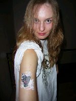 nich nur Bulles Oberkörper, auch Brittas Oberarm wurde durch die schrecklichen Aufkleber in Mitleidenschaft gezogen, auauauau...