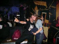 dann gibts da noch da hinten Schlagzeuger Brami mit ner ähnlichen "Frisur" wie unser Roman und Bassisten Shredder. Der singt aber auch. So, Band erklärt, super
