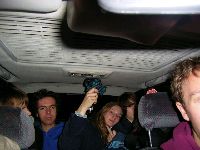 Volker is heute mit Auto da! Also Quetschenwa uns da alle rein, zu viert auffe Rückbank aber weil Fö der größte is kanner nach vorne. Ha!