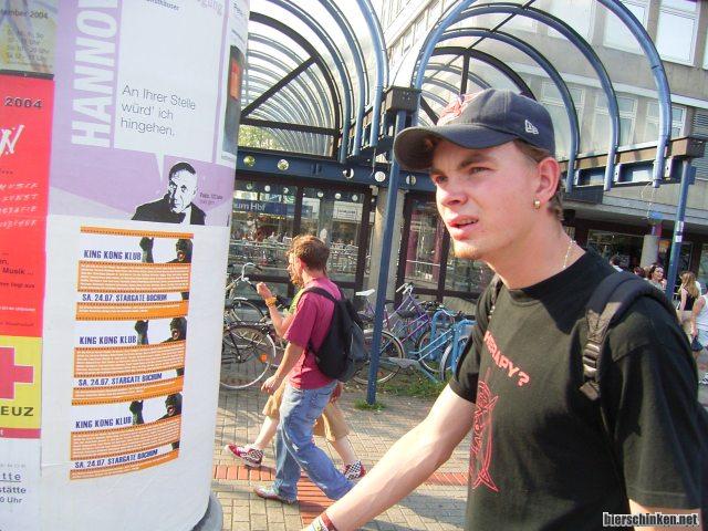 "An Ihrer Stelle würd' ich hingehen" - Das Plakat spricht schon die richtigen Worte und weil wir weitergäin müssen, schreitet Martin Richtung Bermuda-Dreieck, so nennt sich das Kneipenviertel da in Bochum