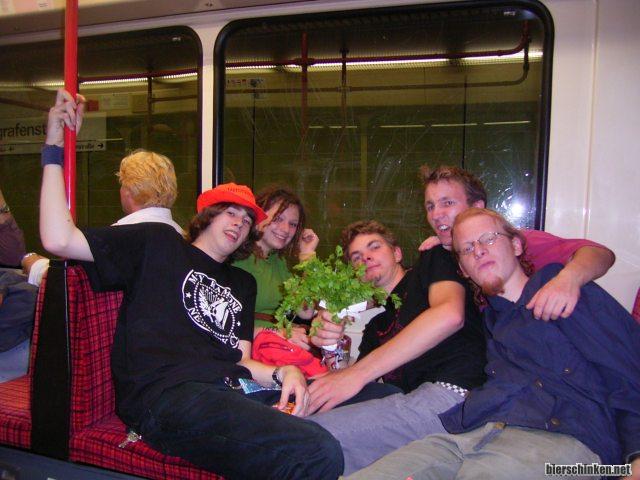 Inner U-Bahn treffen wir noch nen süßen kleinen Jungen mit nen Petersilienstrauß inner Hand und stellen uns vor wie er vor seiner Freundin kniet und ihr den überreicht. Findet er zwar auch witzig, will die Szene aber nich nachstellen, schade...Machen wir halt zu fünft nen Antrag.
