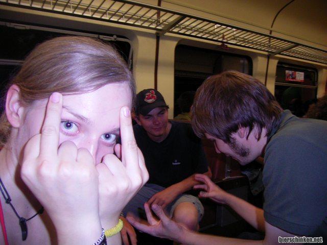 So, Rückfahrt! Britta hält sich aus welchem Grund auch immer ihre Hände vors Gesicht