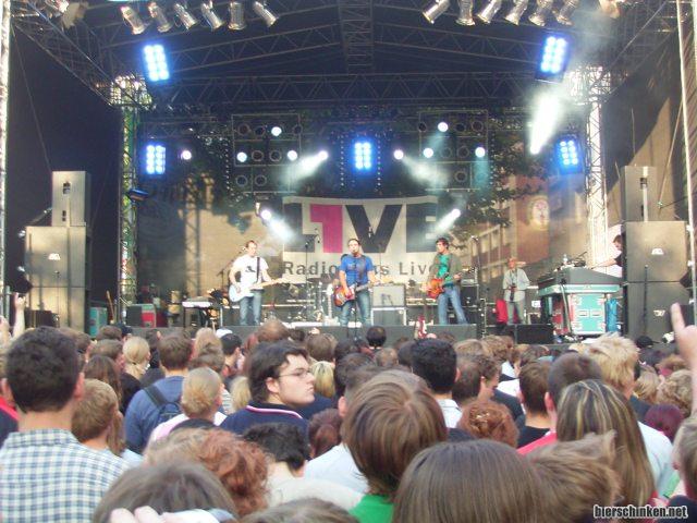 nachdem auf der Einslive-Bühne zunächst Tape gespielt haben (mit Sängerin deren "Jiihaa" irgendwie aufs Zwerchfell ging), wirds nun Zeit für Virginia Jetzt!