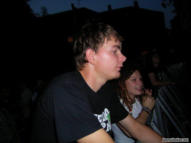 Jo, leider schon zuende, wir machens uns trotzdem bequem am Absperrgitter, Martin kriegt sogar ne Setlist aber der Gitarrist will mir verdammt nochmal seine Gitarre nich schenken, nunja...zurück zum Rösti
