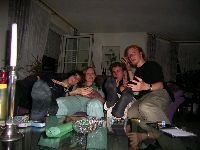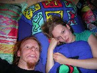 Fö und Britta im Bettchen. Übrigens is grad ca 3 Uhr. Keine Fotos hamwa leider von Volker, der danach noch total betrunken ankam, "sofort" wieder gehen wollte, komische Sachen sütterte, dann sowas sagte wie "ey wirtz tut mir herbe leid du musst ja morgen arbeiten ich geh jetz echt ma" - fuß aus tür - "ey hille du hastn aquarium? da fällt mir ne story ein, erzähl ich jetz, is echt wichtig!", ja blablaschwafel, um 4 geht er dann, 6 uhr mussich aufstehn und maloche blabla