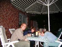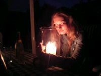 jo, nochmal nach draußen, die Kerze da sieht richtig unheimlich aus, fast so unheimlich wie die Britta dahinter