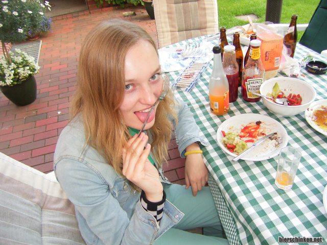 Also nach der Arbeit zu Hille...Hier wird heut fleissig gegrillt. Hille hat Salat und Marinade vorbereitet, sehr schön, dazu gibts Fleisch und Wurst weil Fleisch macht stark und mit Salat findet man eh keine Freunde. Britta hat auch richtig Hunger