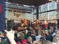 JESUS SKINS! Was ein grenzenloser Spaß! Wir waren uns damals unsicher, wie ernst die das meinen. Aber nachdem Insider berichteten, dass die Band sich hinter der Bühne kaputtgelacht hat, waren wir beruhigt. Das geilste am Auftritt waren eigentlich die vielen Pappschilder der BesucherInnen mit Christenthematiken. Zu lange her, ich weiß nicht mehr was so alles drauf stand. Zum Beispiel "Christen Fisten!". Und da war diese Truppe von vollverschleierten Palituchträgern mit Schildern wie "Mohammed statt Jesus". Ein großer Spaß! Ich wünschte, jemand hätte ein vernünftiges Foto von der Bühne aus gemacht, die Schilder waren echt irre witzig! Wo ist eigentlich mein Backstagepass?