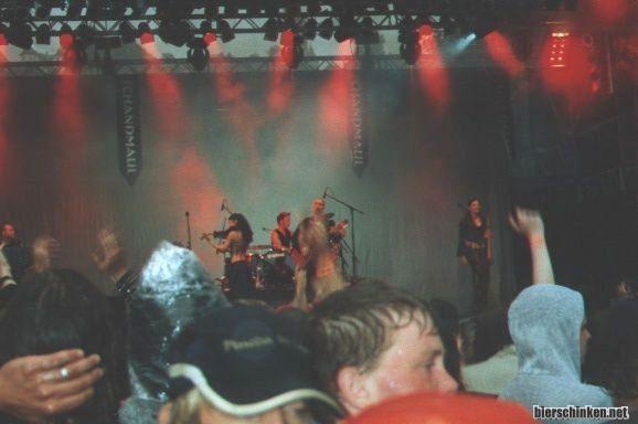 da wir erfinderisch sind, haben wir schon im Vorraus festgestellt: Weiter Weg zum Festivalgelände bedeutet, erstma aufm Zeltplatz bracksaufen so dass mans grad noch nach unten schafft dann brauch man da unten nichmehr so viel. Und weil CATTi und Benni Pressedinger haben kriegense da hinten kaltes Bier fürn Euro, kamman nich meckern. Achja, Band: Schandmaul! Habbich diesma mehr von mitgekriegt als aufm Wacken aber irgendwie hm naja, warn nich schlecht