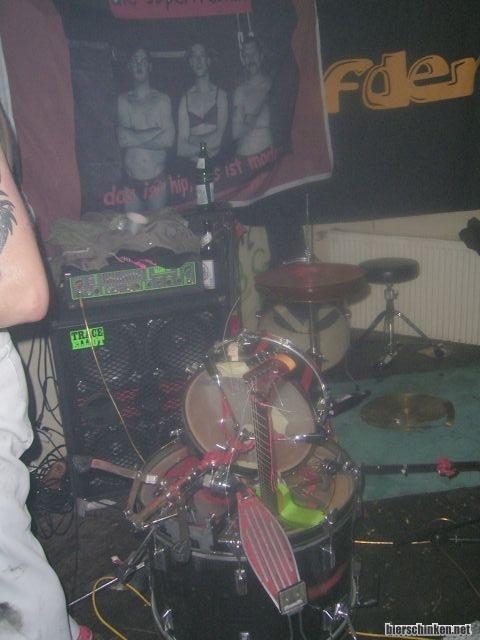 Metal Berten (das lustige Mädchen) hat seine Gitarre ganz Rockstarmäßig im Schlagzeug versenkt, ganz groß!