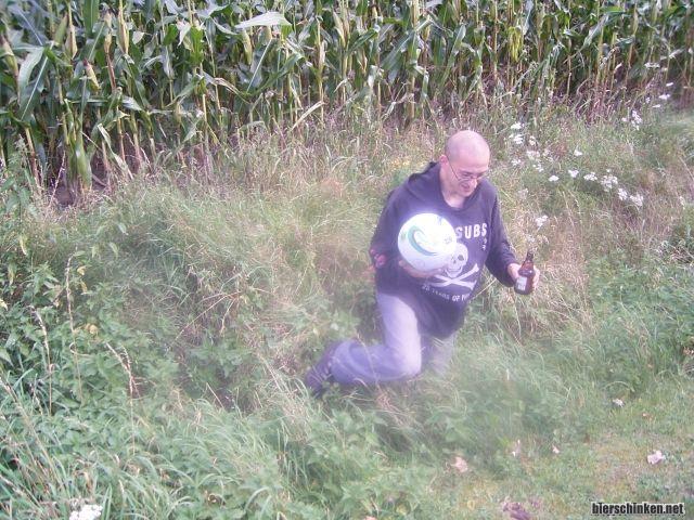 Am nächsten Morgen weckt mich Ali weil da irgendwie inner Scheune n Kasten Bier rumsteht. Also nich lang gezögert! Danach lockt uns der Kollege raus weil er irgendwie nen Fussball gefunden hat, Ali landet daraufhin irgendwie im Graben