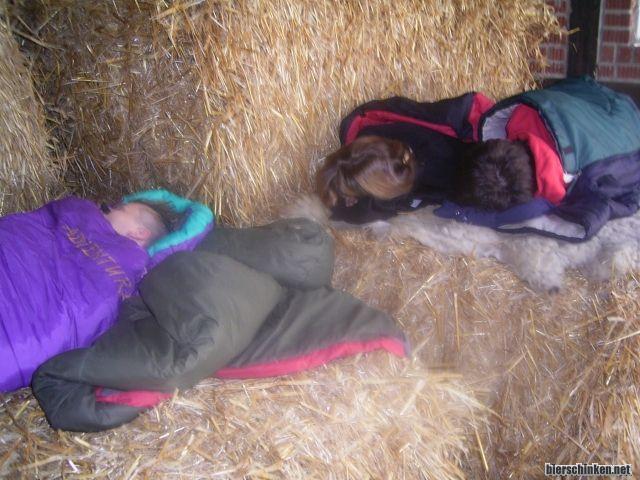 Claus, Jessi und Chrü ham ganz bequem aufm Heu gepennt. Da wohnt eigentlich der Typ der sich das Tipi gebaut hat weil inner Scheune kein Platz mehr war, aber der hat denen wohl den Platz überlassen