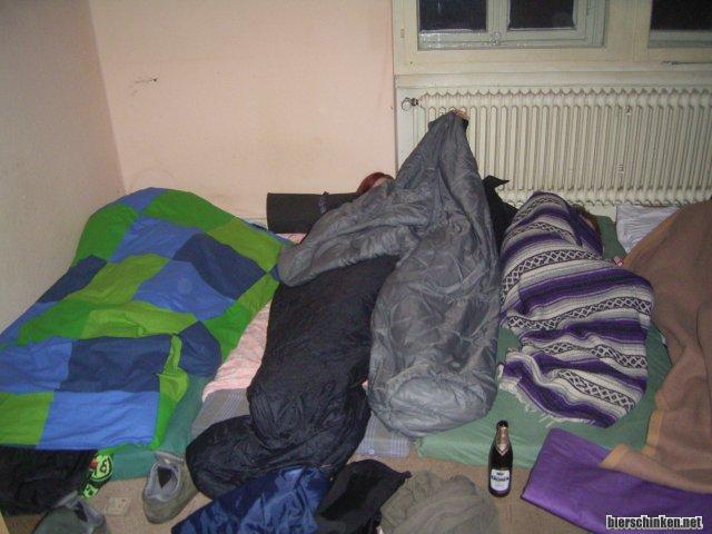 Mit annern Worten ziemlich kalt, also alle ab auffe Matratzen unter tausenden von Decken und Schlafsäcken, nur ich hüpf da mit meinem Bier und Robbüs ipod rum und hör Turbonegro.