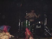 So. Zurück zur Band. Schon gemerkt? Alex hatn Slime-Shirt an! Ja, sind ja auch aus Hamburg. Und versucht auch sonst, sich der Thematik "Punk im Pott" anzupassen, heißt dann also er schüttelt Bierflaschen und spritzt damit rum. Oder sacht wie sehr er sich freut dasse vor den Lokalmatadoren spielen dürfen - "Wir sehen uns gleich vorne im Pogo!"