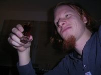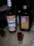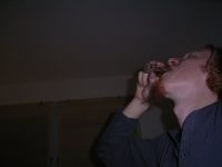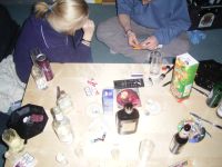 Joah, man siehts, der Tisch is schon ziemlich dreckig, wird jetz also erstmal gefegt. Und weil nix anständiges da is trinken wa Korn mit Amaretto, eeeeekelhaft saggich euch! Bah, viel zu süß. Aber Bier isja nimmer da