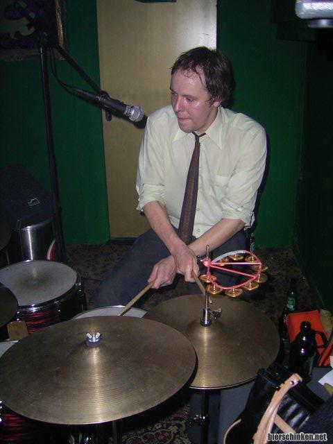 Am Schlagzeug diesmal der Bassist, am Bass der Gitarrist und anner Gitarre der Schlagzeuger. N bisschen Abwechslung muss ja sein und is auch ne tolle Methode, um zu zeigen, was man so drauf hat...