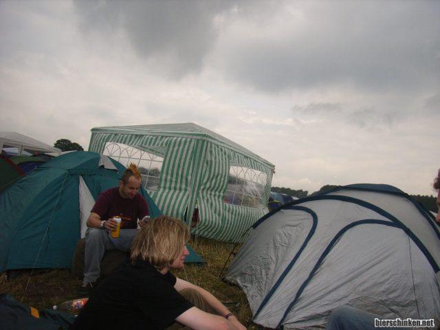 Das Campingareal war riesig, unmöglich hier bekannte Gesichter zu finden! Auf der Suche nach einem Zeltplatz standen plötzlich Azi und Laura vor uns, die uns halfen, einen Platz zu ergattern. Zufälligerweise campierte Britta direkt nebenan, die annern Dortmunder warn auch nich weit. Passt!
