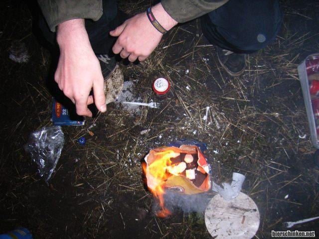 Wie immer nach der letzten Band: Alles was nicht mit zurückmuss verbrennen! Burn motherfucker burn! Nebenbei feilen wir an unserer Gesangskarriere, wollen ja nächstes Jahr auch mal hier auftreten! Der Song handelt übrigens von Hille, hat drei Strophen und endet mit SLAYER!