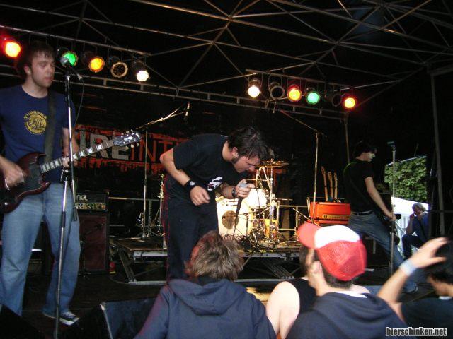 Der Sänger springt dazu lustig die ganze Bühne rauf und runter, schreit in sein Mikrofon, singt auch mal, wenn nich grad der Gitarrist singt und feuert auch toll das Publikum an. Hm schaunwa uns nich bis zum Schluss an, erstmal gucken was sonst so los is.