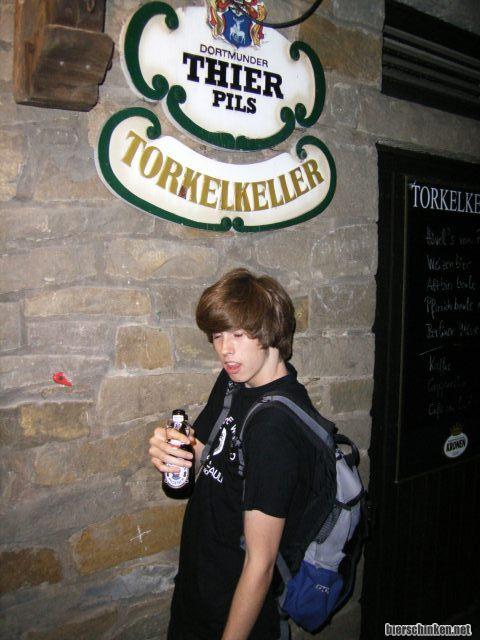 Hille posiert noch kurz vorm Torkelkeller. Da warnwa pissen. Die Klos da drinne sind so eng dass da keiner am Waschbecken stehen darf wenn man die Tür öffnet. Aber Hauptsache umsonst, danke lieber Torkelkeller. Jo, danach dann aber zurück, aber flott!