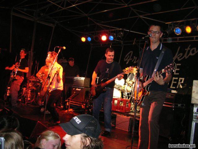 Frau Doktor spielen nämlich schon als wir ankommen. Dabei hatt ich mir den Zeitplan doch anders aufgeschrieben, komisch...na macht ja nix, kommen ja noch relativ zum Anfang. Inzwischen isses beachtlich voll geworden hier und neben der üblichen Dorfjugend gibts auchn paar skabegeisterte junge Zuhörer