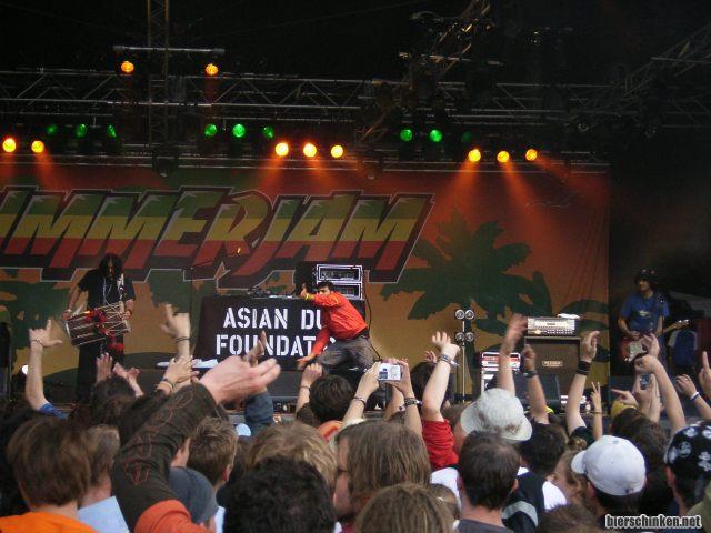 Joah, gibt experimentelles Gefrickel, Crossover-Dub oder wie auch immer man das nennen darf. Ab und zu is noch son Ragga-Sänger mit dicken fetten Dreads dabei der macht bei den neuen Stücken mit. Und eins mussich ja mal sagen, die Summerjambesucher sind ja echt tolerant. Trotz lauter Gitarrenwände und so feiern die alle ganz ausgelassen! Aaaaber Asian Dub Foundation ham den Hit nich gespielt, schade.