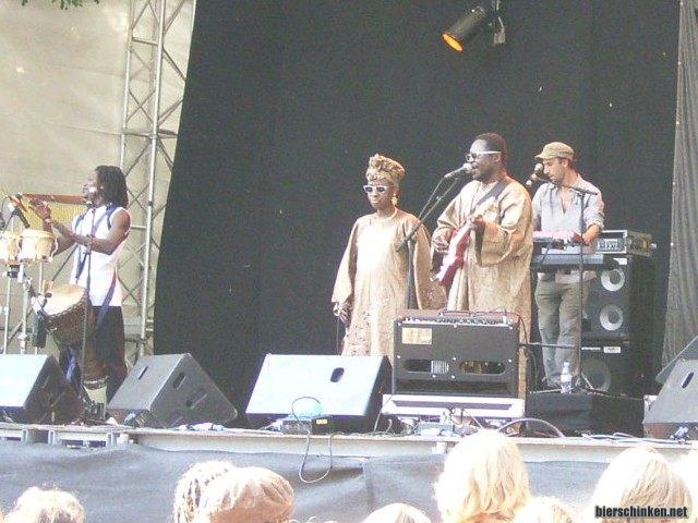 Und wieder zur Bühne! Als Nächstes schauen wir uns Amadou&Mariam an, ein blindes Paar aus Afrika, die Musik is auf jeden Fall Weltmusik zu nennen, aber sehr offen mit schöner Gitarre und mit einer sympathischen Band vorgetragen. Verdient echt Respekt wie die beiden das auf der Bühne so hinkriegen ganz ohne was zu sehen, besonders Amadou mit seiner Gitarre kann echt begeistern