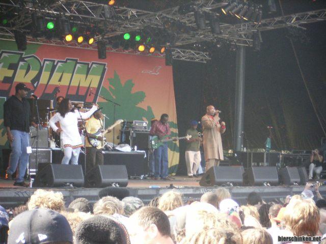 auf der Hauptbühne sollte jetzt eigentlich Anthony B spielen, isser aber laut Aussage einiger Leute nich, da steht nämlich Frankie Paul also wirds wohl das Dreierpackage mit Gregory Isaacs und U-Roy sein, auch alles so Urgesteine aber ich hab da ja eh keine Ahung von...