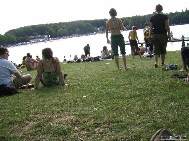 Also erstmal wieder ans Ufer weil Wetter so schön und wenn ich Schlamm will würd ich ja aufs Wacken fahrn. Und ich frag mich ob ich wohl heute noch ne Band sehen werde die irgendwie mal Gitarrenarbeit zeigt und nich nur so Wischiwaschiplingplang