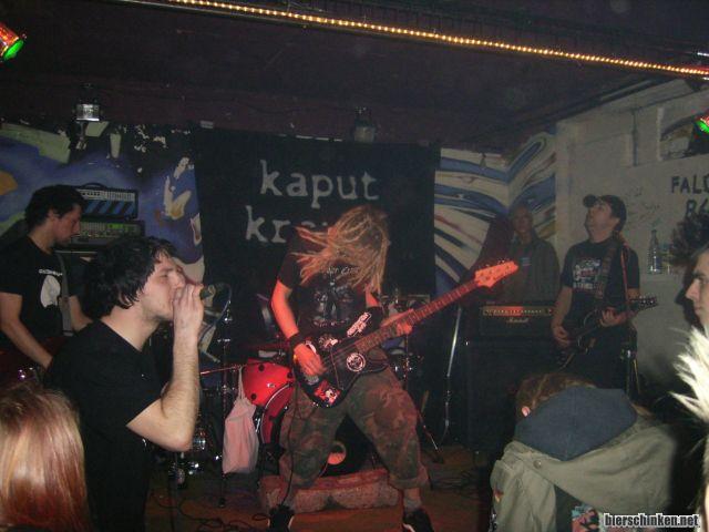 Aber mein Held is der Bassist weil der so schicke Haare hat! Tjoah, voll isset wie gesacht auch, die ersten lassen sich sogar zum Pogen begeistern, zwei von den Typen die sich als Punker verkleidet haben ausm Zug auch, zum Beispiel der Typ der sich bei Punk im Pott als Punker mit Fuck-Off-Tattoo aufm Arsch verkleidet hatte, obwohl garkein Karneval war