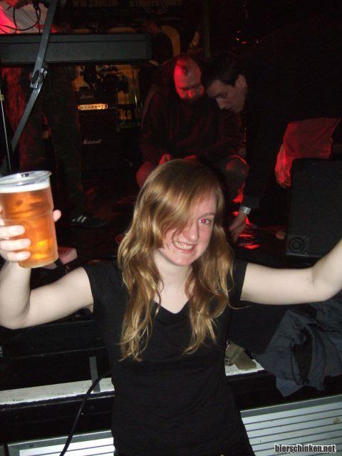 und Bier hoch von Hannah, die hat heute mal den Satansblick. Auwei. Aber is glaubich immernoch heiser von gestern, oder hat ihre Heiserkeit heute noch ein wenig verstärkt, ja das sind halt so die Nebenwirkungen...