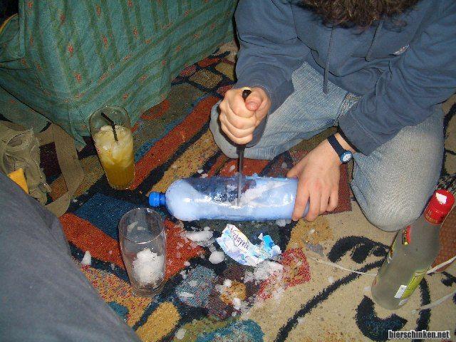 Zuhause gibts dann wieder Crushed Ice, diesmal fällt viel auf den Teppich. Aber wie 1 schon sagte: "Mojito heißt auf spanisch Mit Haaren", also müsenwa da durch. 3 is ja zuhause geblieben und hat tatsächlich den Fernseher eingeschaltet (von wegen lernen) und sich danach Wodka-O reingepfiffen, pf!
