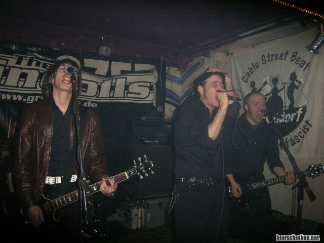 Nu wirds aber Zeit für die erste Kapelle - die Grindolls aus irgendwo Pott. Maks feiert die sowieso ab, und ich kenn die offen gestanden nur vom Namen und weil ich mir letztens was von denen runtergeladen hab. Darf man das? Aber mich hamse überzeugt, gute Liveband, sympathische Ansagen und Songs, die irgendwie gleichzeitig rotzig und melodiös klingen - Punk'n'roll eben!