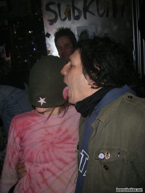 Nachm Konzert taucht dann auch noch Motte auf, taucht wohl immer auf wenn alles vorbei is, hab ich grad den Eindruck, aber kümmert sich trotzdem eifrig um unsere Reisegruppe, auch wenn ich nich ganz weiß was dieses Bild aussagen soll. Wir ham die ganze Zeit versucht, n gescheites Pärchenfoto von ihr und Ossi hinzukriegen, aber die beiden wollten nich.