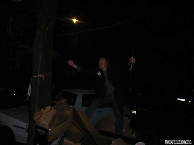 Maks is irgendwann verschwunden, wahrscheinlich Pommes holen, also latschen wir auch los, quer über irgendwelche Sperrmüllhalden hinweg und Ulf vertraut mir den ganzen Weg über nich, dass ich den Weg kenn - Banause!