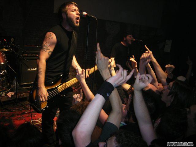 Mehrstimmigkeit is trotzdem gefragt, dafür sorgen nich nur der Bassist und der andere Gitarrist sondern auch das Publikum. Mitgrölstimmung olé, Punkrockfinger hoch und son Mist, mein Bier is alle. Hm, stell ich die Flasche halt weg. Und hol mir kein neues, weil ich mich grad auf genau dem Pegel befinde, der perfekt is um ordentlich mitfeiern zu können. Wie et sich gehört halt. Hach is die Welt schön.