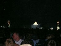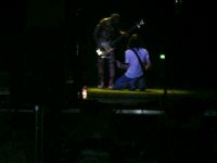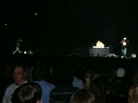 Wir verlagern unsere Position irgendwann an den Rand der Bühne, von wo man auch klasse gucken kann, außerdem versperrt hier nich der nervige Kameratyp die Sicht. Von der Seite sieht Flea noch viel lustiger aus, springt immer rum und sieht in seinem bunten Hippieanzug aus wie n tätowierter Paradiesvogel.