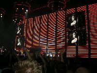 Abgerundet wird die Show durch eine bombastische Lichtshow, hinten eine Leinwand aus Lichtstäben, die sich bis zur Decke fortsetzen, außerdem hinter der Bühne vier Videoleinwände, die die von vier Kameras eingefangenen Bilder zeigten und sich während des Konzertes ständig in Bewegung befanden.
